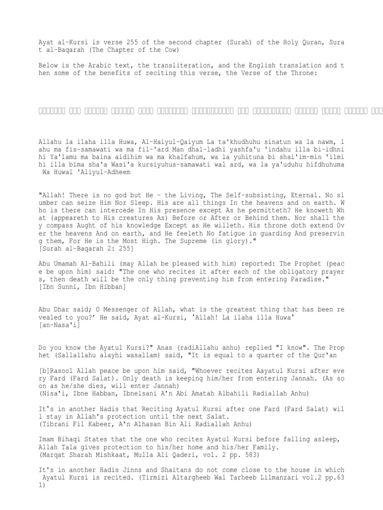 Ayatul kursi text meaning souret elbakara ayat al kursi in english ayat ini tidak hanya sekedar dibacakan tatkala ada gangguan seperti mengusir syaithan dari orang yang kerasukan ataupun hal.